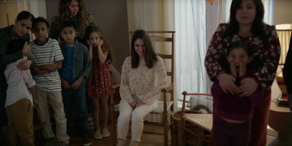 After witnessing a patient’s gruesome suicide, Dr. Rose Cotter’s (Sosie Bacon) life is turned upside down by the sinister appearance of the ubiquitous ‘smile’ of the film’s title. The strange and violent occurrences pile up, setting Rose on a collision course with the haunting memory of her mother’s suicide.